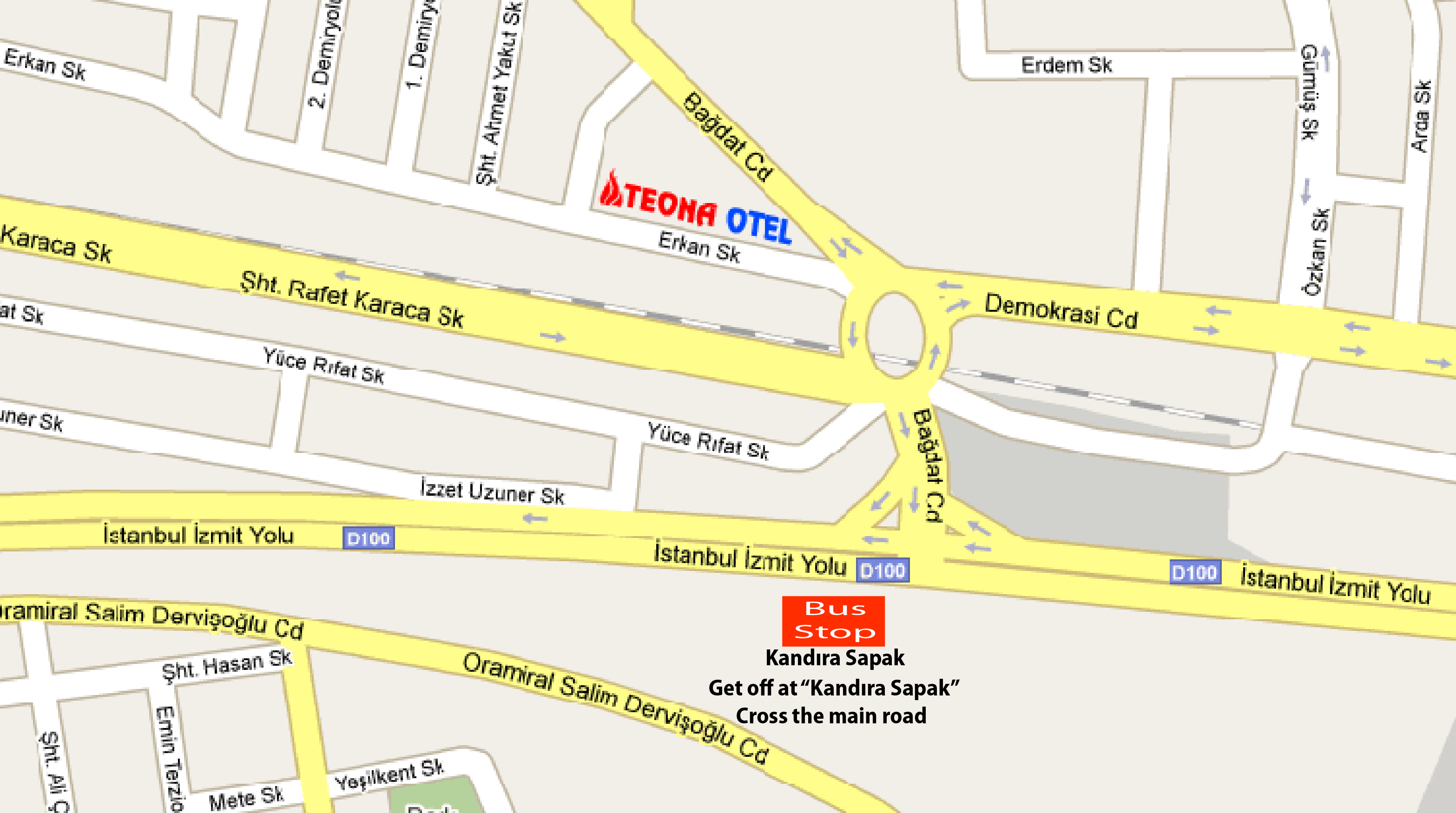 signboards, İzmit Seyahat and Efe Tur will be right across from there.)